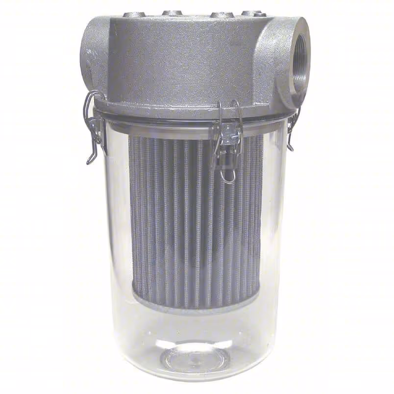 - Filter Silencers: Regular or washable polyester cartridge filters inlet air to 5 microns with optional filter change gauge mounted on plated steel, stainless steel, or powdered steel housing