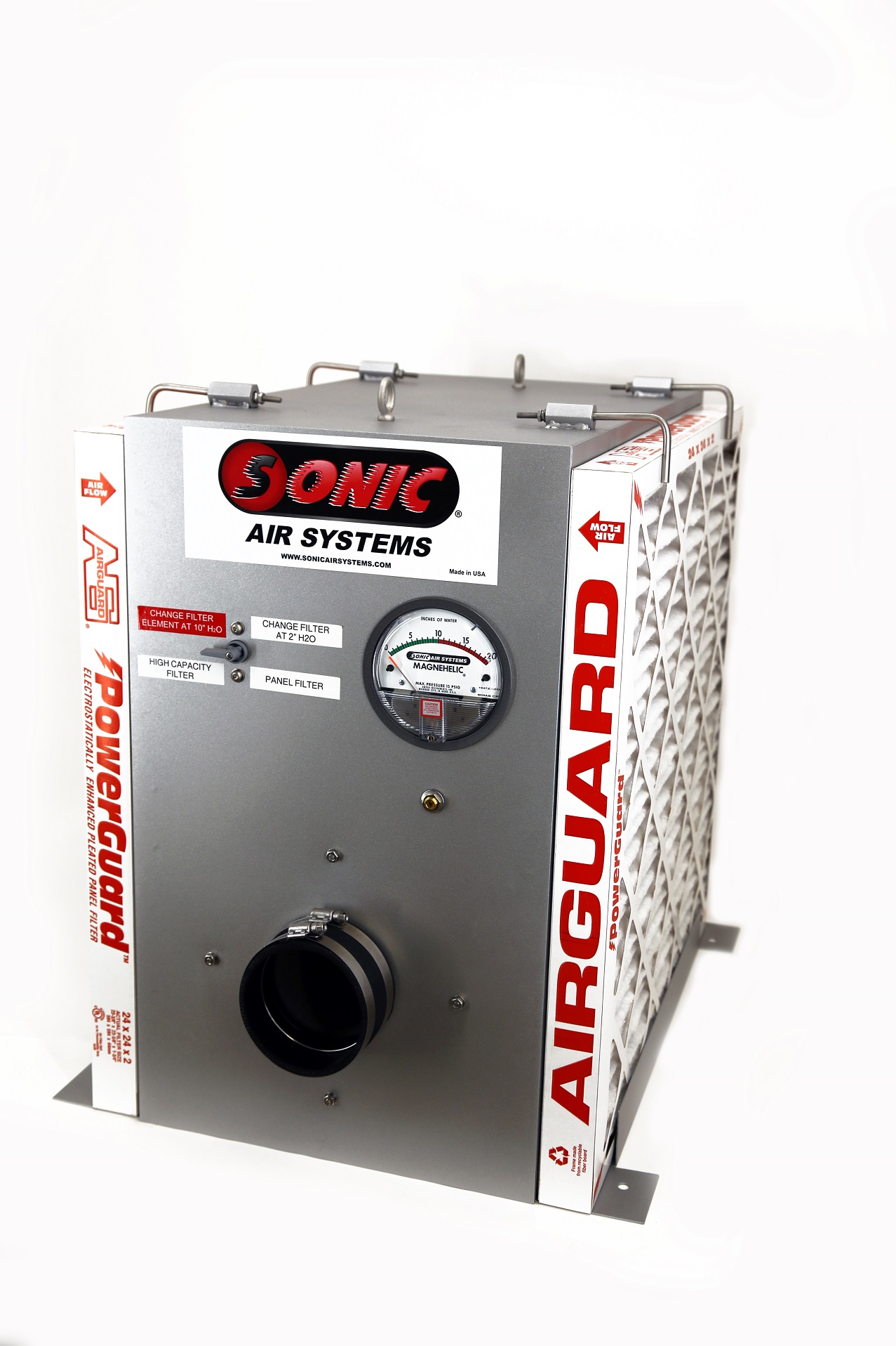 - HEPA Filter: Filter air particles as small as 0.3 microns for air knives and nozzles with Sonic HEPA filter (High-Efficiency Particulate Air).